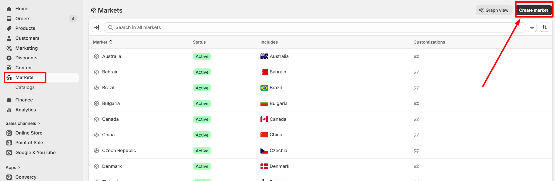 Market settings can be configured directly in the Shopify admin, so there is no need to set them up within the Convercy app. Any languages you add in our app will automatically be applied to all existing markets.